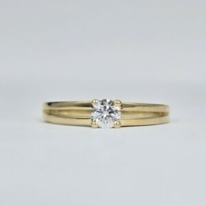 Référence Mohedano : 31300673 Tour de doigt : 53 Type de pierres : Diamants Poids du Diamant central : 0.230ct Poids total diamants : 0.060 Qualité diamants : G/SI Métal : Or jaune 750/000 Poids métal : 2.790gr
