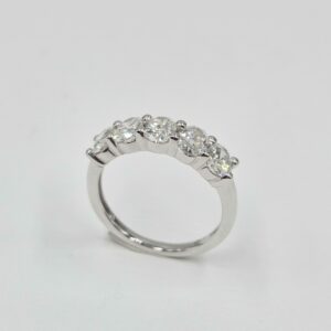 Référence Mohedano : 371A00032 Tour de doigt : 53 Type de pierres : diamant central + demi-tour diamants Poids du diamant central : 0.510ct Poids total diamants : 0.180ct Qualité diamants central : FG/VS Qualité diamants :F/VS Métal : Or blanc 750/000ème Poids métal : 2.500gr