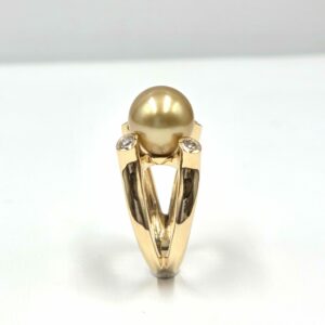 Bague or blanc 750/000. Avec 1 perle d'eau douce accompagnée de 13 diamants brillants. Tour de doigt : 55 Poids : 3.5g Poids des pierres : 13 diamants pour un total de 0,29 cts.