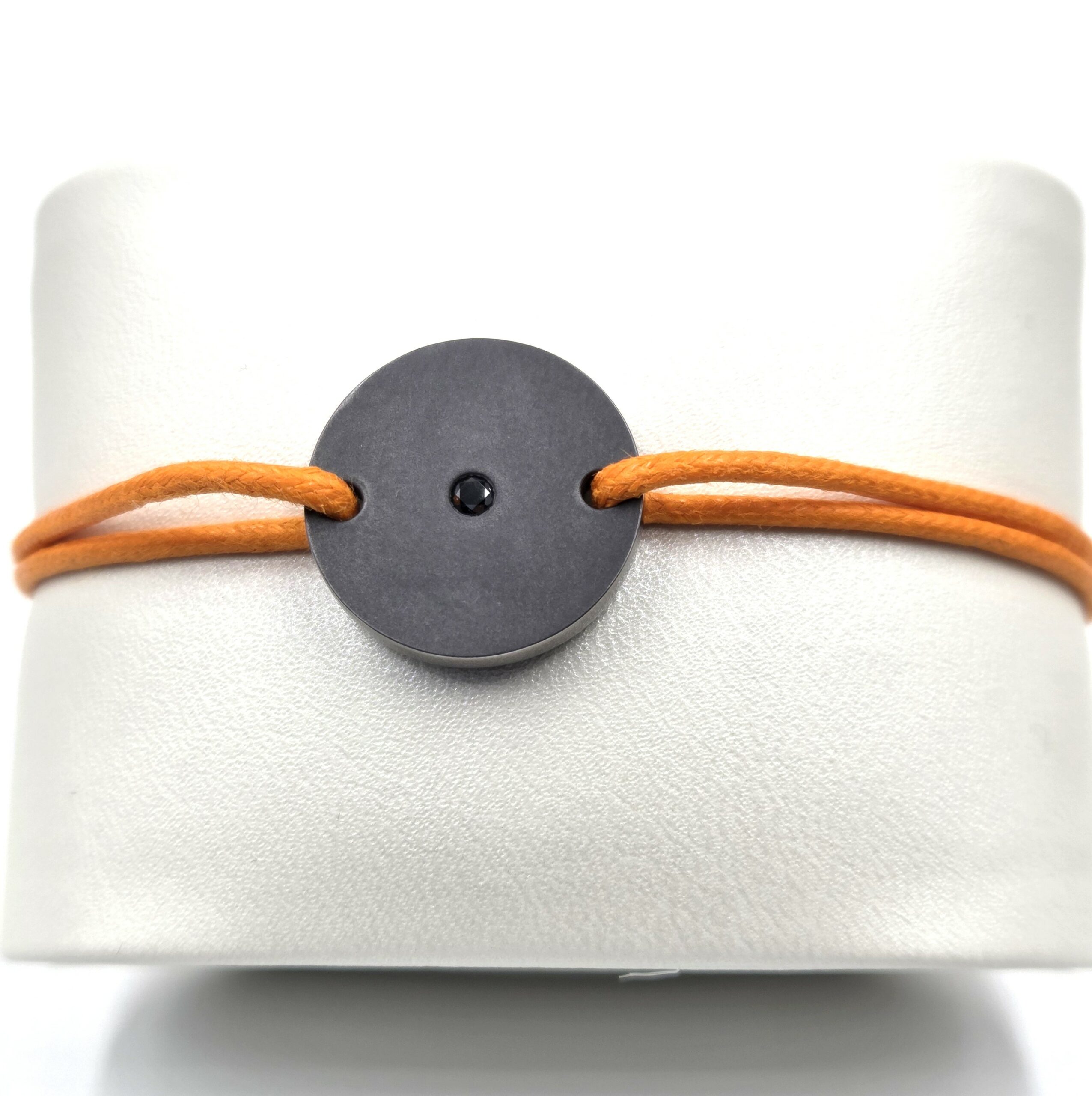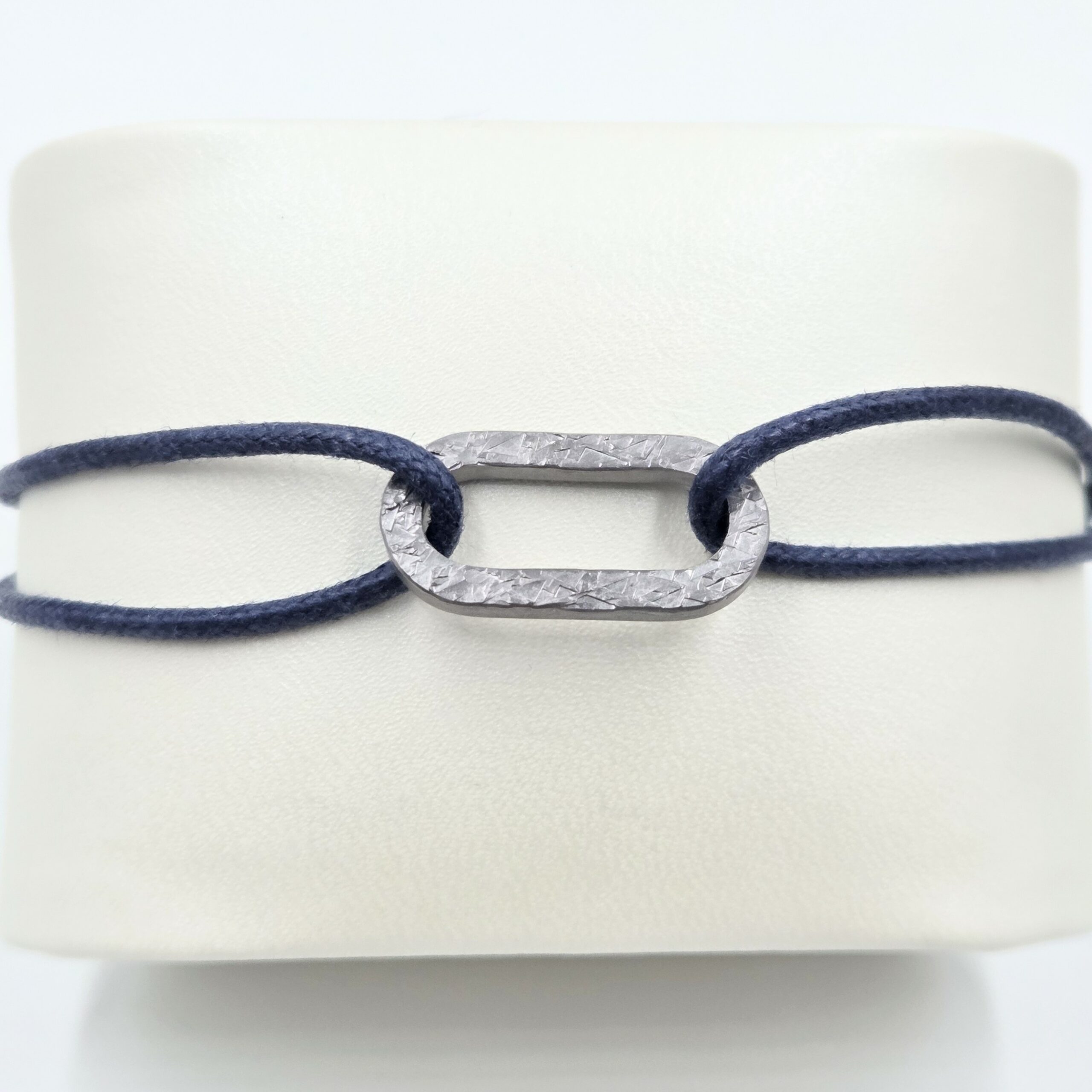 Bracelet homme Tantale sur cordon « Yin » Finition martelée et gun