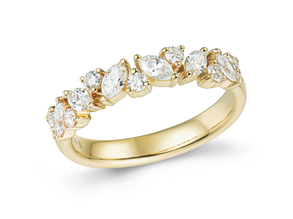 Dans les alliances Luxe et Joaillerie, le modèle « Diane » est un réel coup de cœur. Composée de diamants taille rond brillant et taille navette, cette alliance se démarque par son design unique et l’harmonie parfaire entre ses diamants. Très élégante portée seule, elle pourra également venir sublimer une bague de fiançailles.