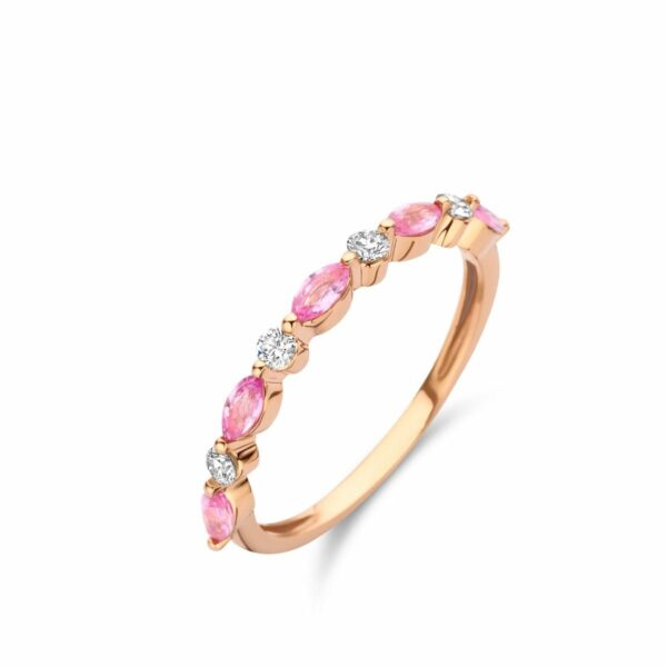 Bague 4 Diamants 0.14 ct – 5 Saphirs Rose 0.46 ct