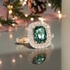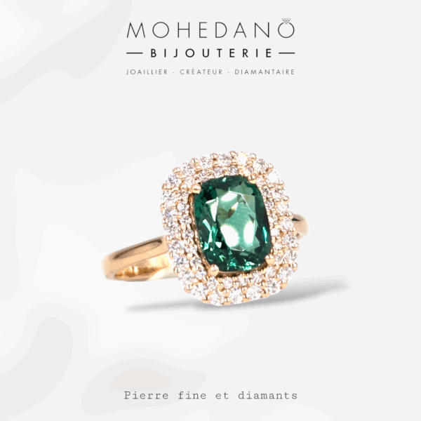 Sertie d’une pierre fine à la couleur vert intense, cette nouvelle bague “Éclat Vert Impérial” révèle toute la beauté d’une création originale et précieuse. Son halo double de diamants exalte chaque nuance de la pierre centrale, créant un jeu de lumière captivant.