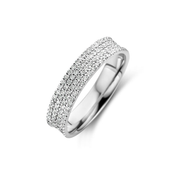 Bague or blanc 750/000 forme ruban incurve confort serti griffes sur 4 rangs de 108 diamants 0.46ct au total.