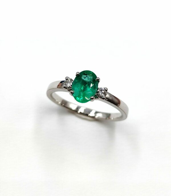 Bague Or Blanc Emeraude et Diamants – Création Mohedano