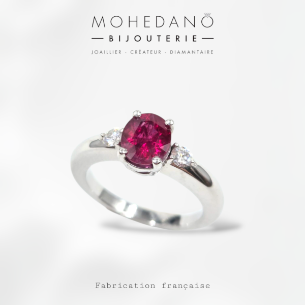 Le rubis, rare est précieux, incarne la force et la passion. Sa couleur rouge emblématique devient de plus en plus difficile à trouver, ce qui en fait une pierre prisée et exceptionnelle. Avec une dureté de 9 sur l’échelle de Mohs, il se distingue par sa dureté, ce qui est idéal pour les bagues que l’on aime porter tout le temps et transmettre aux futures générations. Création sur mesure réalisée dans nos ateliers.