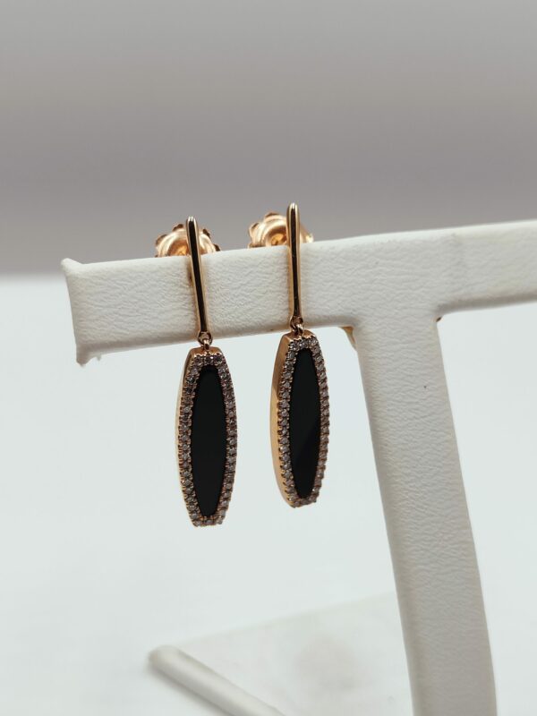 Type de pierres : Onyx et Diamants Poids des onyx : 1.63ct Poids des diamants : 0.22ct au total Qualité diamants : H/SI Métal : Or rose 750/000 Poids métal : 4.16gr Référence Mohedano : 462 00282