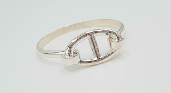 Collection Argent massif fabriquée en France. Bracelet fil demi-jonc avec maille marine grand modèle.