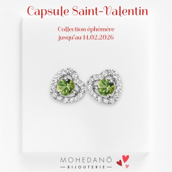 Capsule St Valentin – Puces d’oreilles Love – Saphir vert et diamants