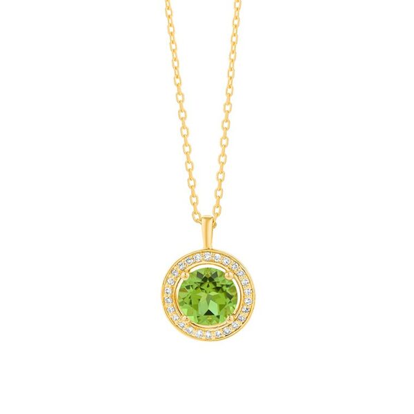 Ce collier exquis en or jaune met en scène un lumineux péridot de 0,880 carat, magnifié par un entourage étincelant de 25 diamants certifiés H/SI. L’harmonie entre la pierre verte et l’éclat des diamants crée une pièce d’une élégance intemporelle, parfaite pour illuminer votre décolleté. Ce bijou d’exception incarne notre savoir-faire joaillier et notre passion pour les pierres précieuses. Laissez-vous séduire par cette création Mohedano unique.