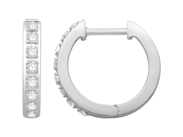 Créoles or blanc palladié 750/000 diamètre 14mm avec 8 diamants sur chaque boucle, serti grain, 0.20ct au total.