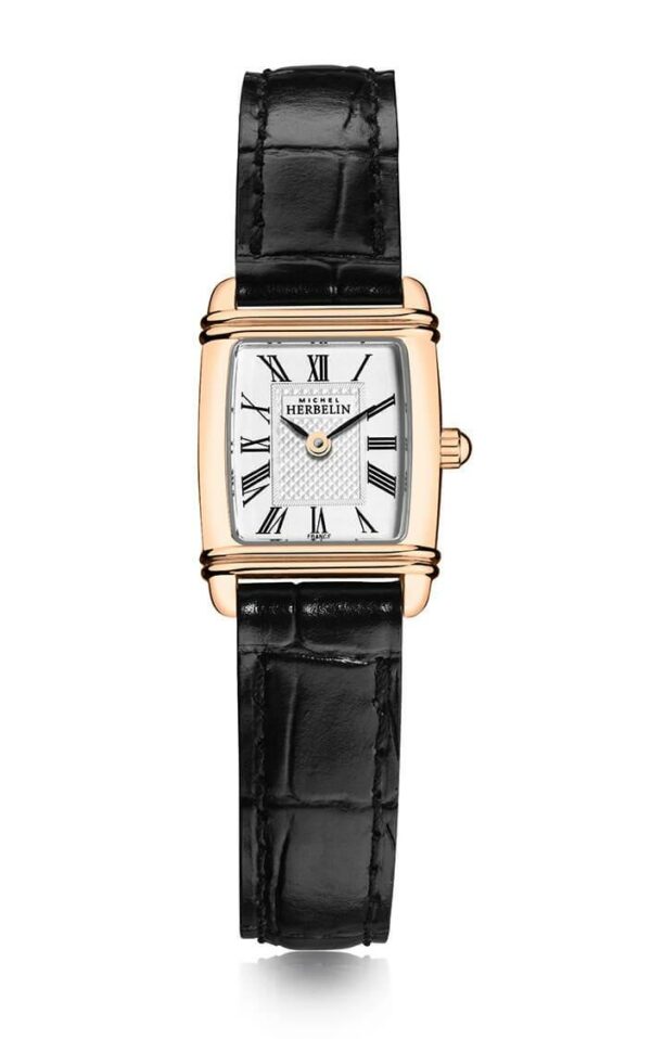 Inspirée des premières créations de Michel Herbelin, les modèles Art Déco sont des garde-temps au design sobre et soigné. Dynamique par sa forme tonneau subtilement cambrée, son boîtier en acier est décoré à 12h et à 6 h. Alliant savoir-faire horloger français et rigueur géométrique, cette Art Déco est munie d’une couronne cannelée. Cette montre Michel Herbelin mise sur un minimalisme raffiné pour sublimer les poignets féminins.
