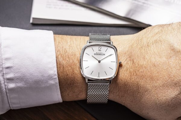 Sobriété et élégance naturelle, une montre chic en toutes circonstances. Cette ligne fait écho aux modèles vintage avec une boite carrée, cambrée qui s’adoucit légèrement aux quatre angles. C’est un look total acier pour cette montre City. Munie d’un cadran gris et montée sur un bracelet en mailles milanaises cette montre habille les poignets masculins avec élégance.