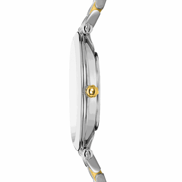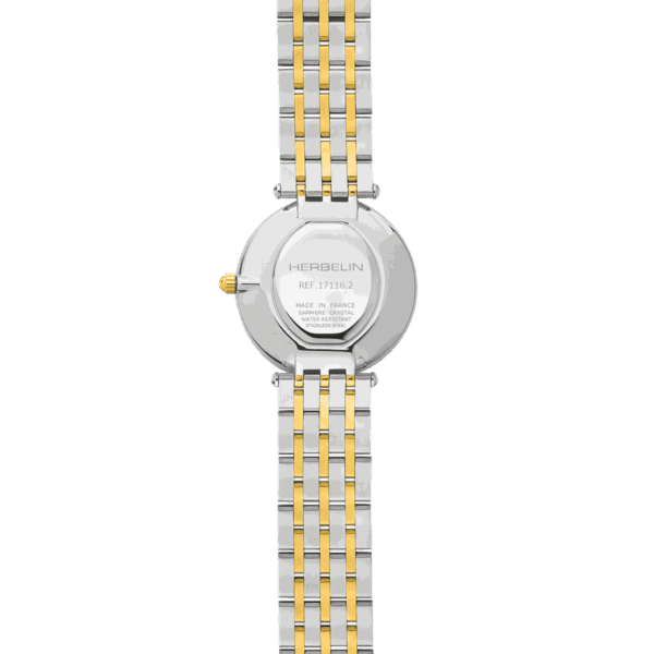 Epsilon, modèle simple et épuré, symbolise la mode française intemporelle du luxe. La finesse des maillions de son bracelet bicolore et son design extra plat épouse à merveille les poignets féminins avec élégance. Son cadran nacré orné de diamants révèle le raffinement de cette montre Michel HERBELIN et confère à l’ensemble un look sophistiqué et moderne.
