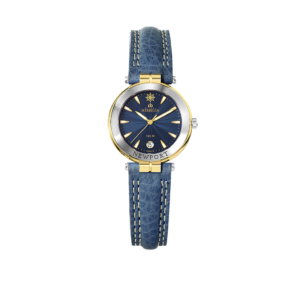 Cette montre Newport est singulière de par ses attaches et l’alliance du PVD or jaune et de l’acier habillant son boitier. Son cadran bleu intense marqué d’une roue de marine à midi rend cette pièce Michel HERBELIN unique. Elle habille les courbes des poignets masculins avec distinction.