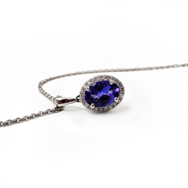 Découvrez ce somptueux collier en or blanc 750/000ème, un bijou exquis qui incarne l’élégance intemporelle avec une touche vibrante de beauté. La Tanzanite, étincelante et captivante, se marie parfaitement avec l’éclat étincelant des diamants, créant ainsi une combinaison époustouflante.