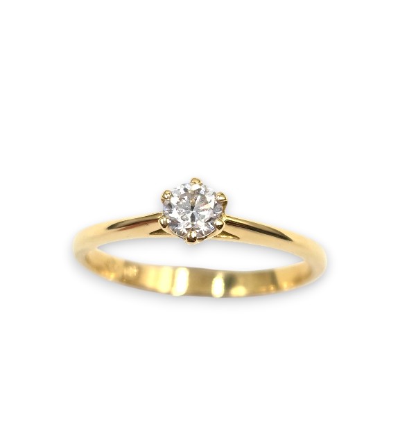 Solitaire 6 griffes en or jaune – Diamant 0,24ct