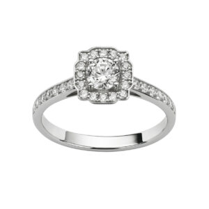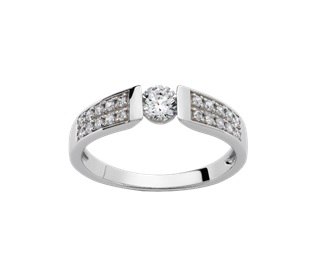 Solitaire or blanc palladié 750/000 avec au centre un diamant de 0.20ct serti 4 pincé accompagné sur le corps de 10 diamants de chaque côté serti grain, total 0.20ct.