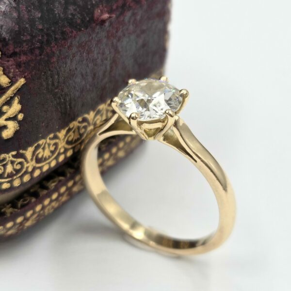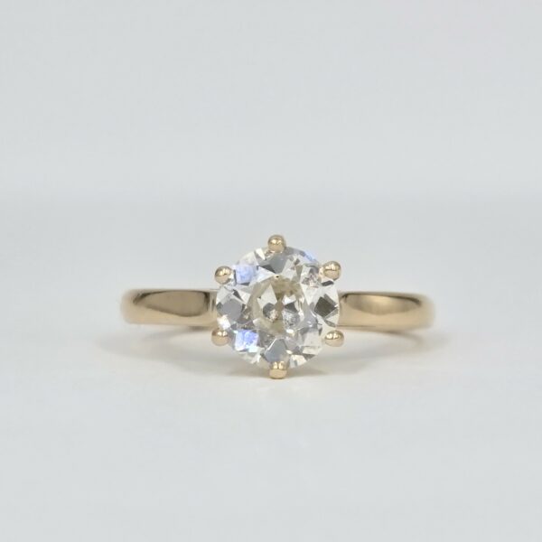 Élancée, délicate et lumineuse, cette bague incarne l’élégance dans sa forme la plus pure. Le diamant ancien de 1.390ct , à la brillance douce et authentique, repose sur une monture en or jaune qui évoque les plus belles histoires d’amour d’antan. Portée seule ou comme symbole d’un engagement éternel, elle célèbre la promesse d’un lien sincère. Chaque détail, du serti griffes à la courbe du corps de bague, reflète un savoir-faire intemporel qui traverse les époques. Une pièce qui parle à celles et ceux qui aiment les émotions vraies et les gestes qui comptent.