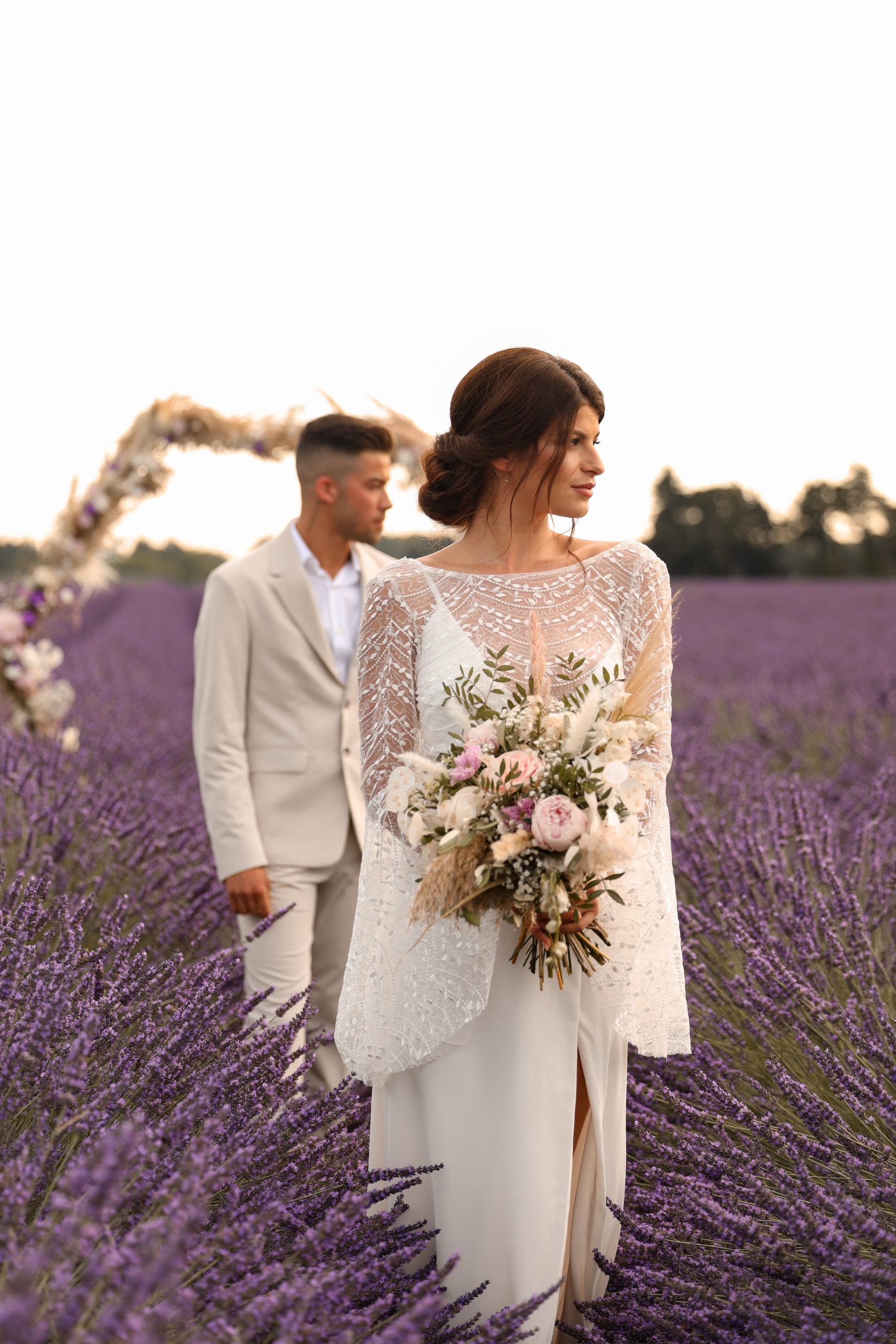 C’est au cœur des champs de Lavande que les mariés du jour se sont dit oui lors d’un engagement intime et raffiné en harmonie avec la nature. Le paysage se suffit à lui-même pour créer une ambiance légère et bucolique à la douceur de la Provence.